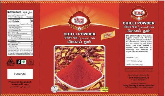 Claimant's chili and turmeric powder packaging: