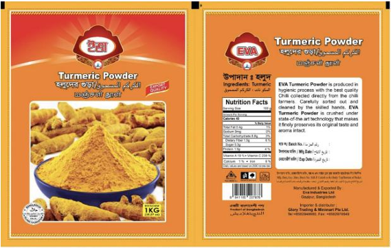 Respondent's chili and turmeric powder packaging: